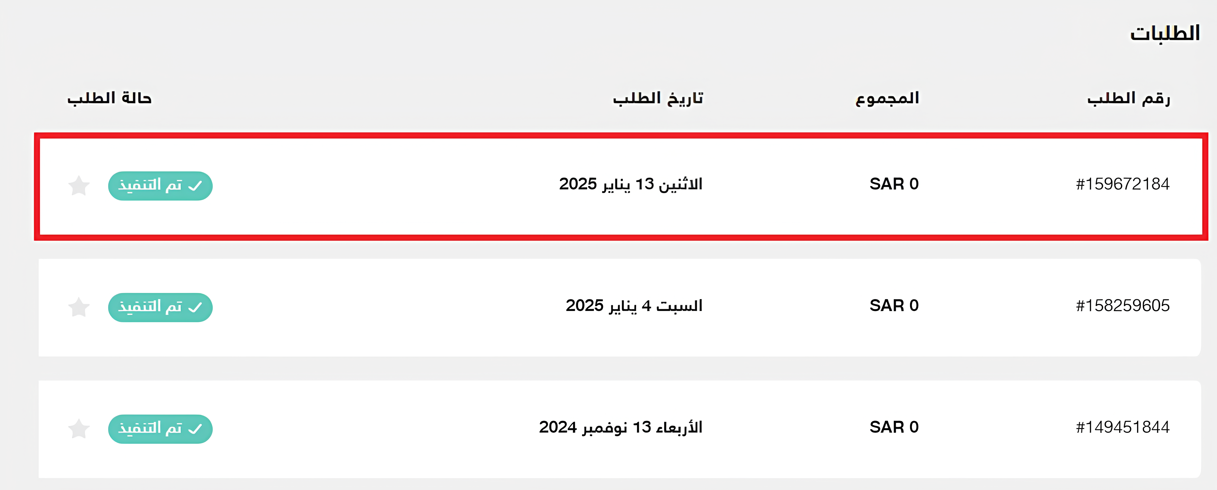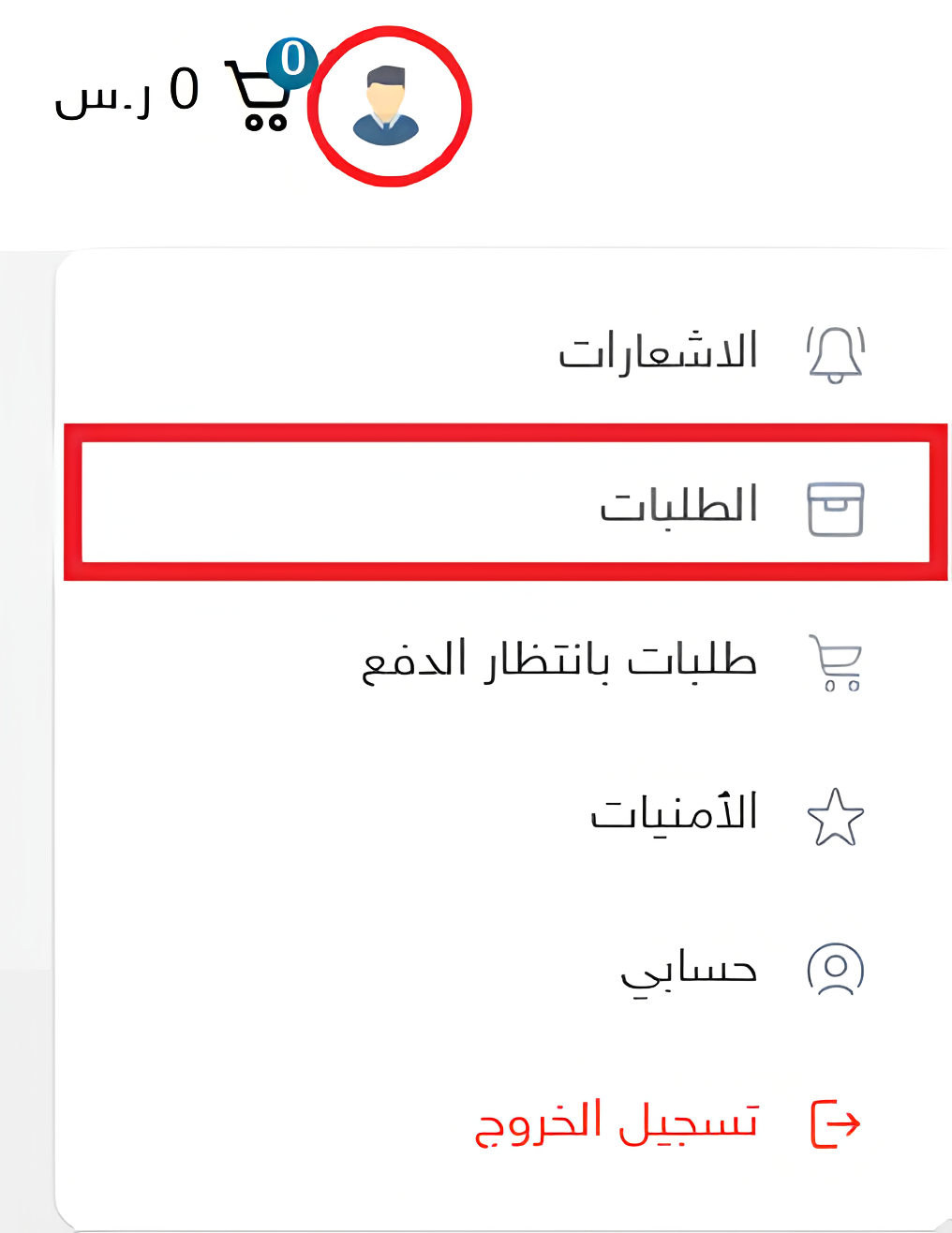 1. الدخول على حسابك في المنصة من أعلى الصفحة٫ ثم الدخول على الطلبات