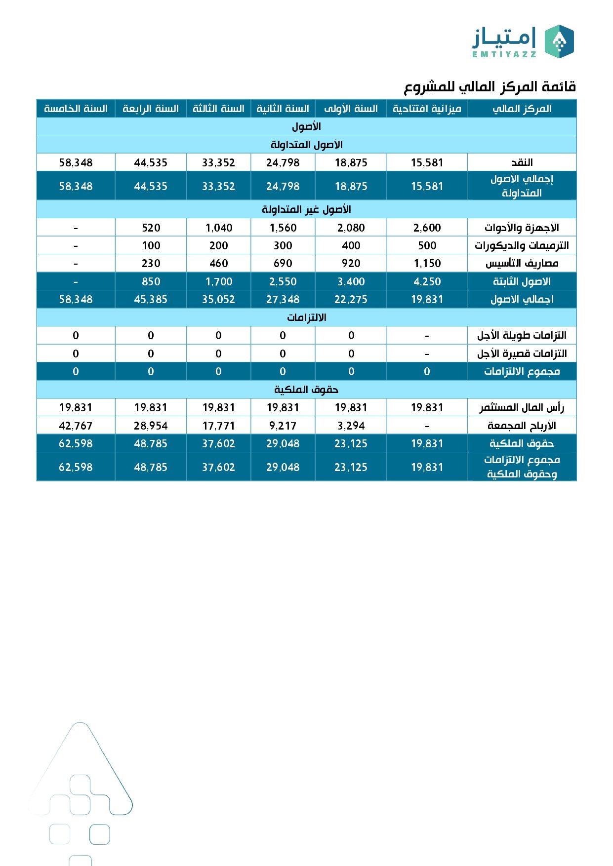 - قائمة المركز المالي للمشروع