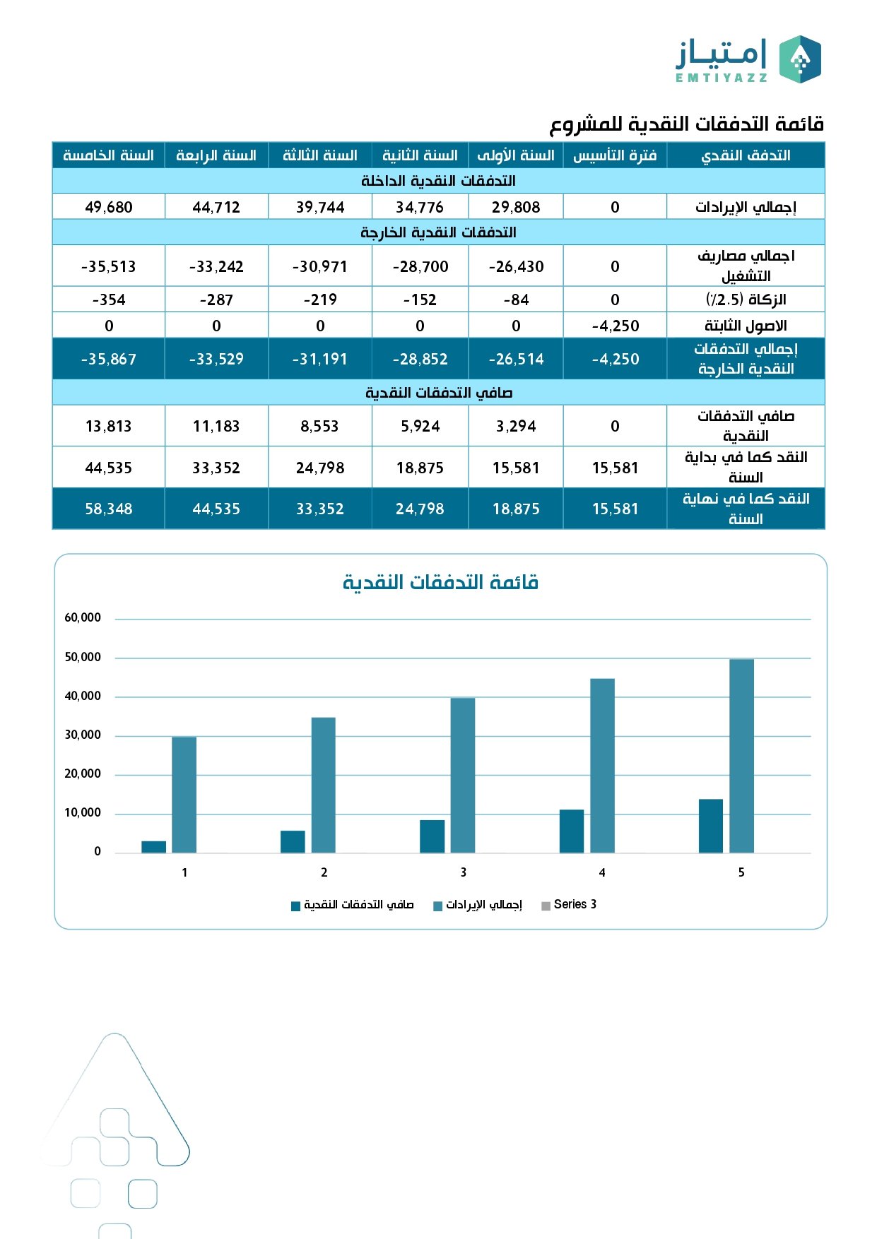- قائمة التدفقات النقدية لمشروع (بالإضافة لرسم بياني)